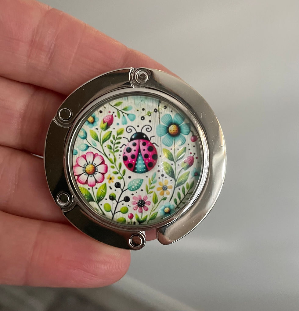 Miroir de sac ou de poche pliable acier inoxydable cabochon rouge gorge