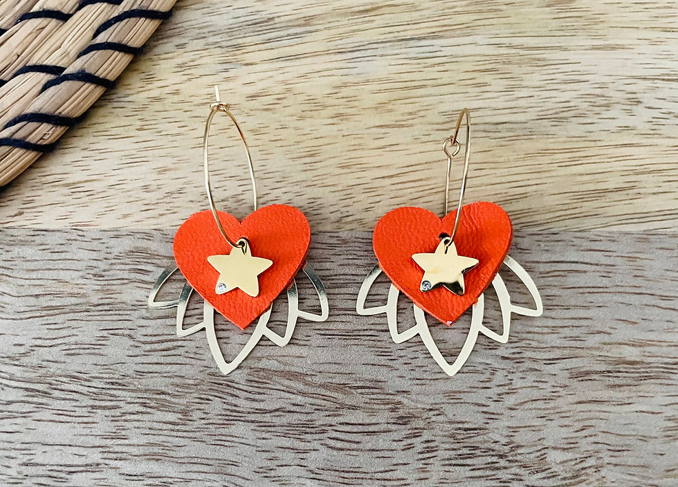 Boucles d’oreilles créoles ginkgo modulables rouge
